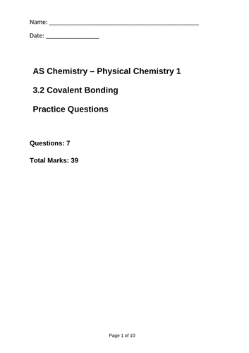 AQA AS Chemistry 2016 Physical Chemistry Exam Questions Booklets